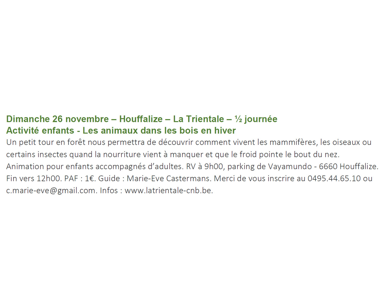 Guide: François LegrainActivité enfants - Les animaux dans les bois en hiver 26-11-2023